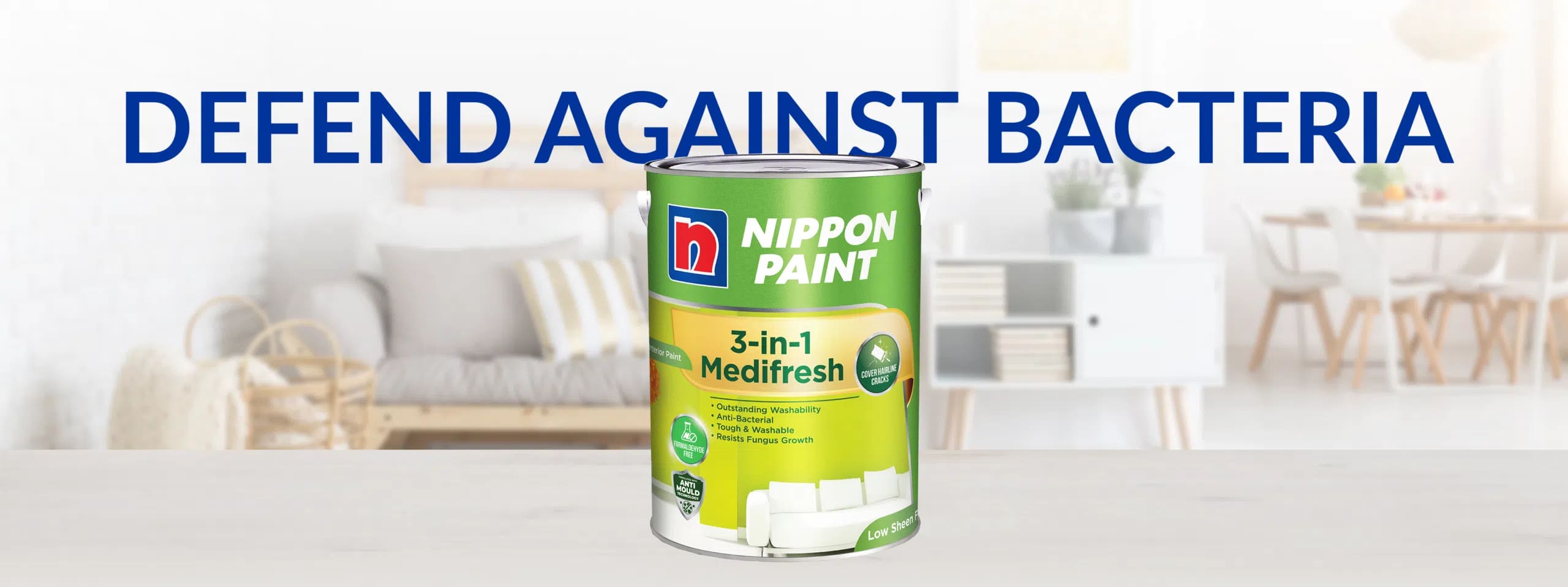 3-in-1 Medifresh anti-bacterial paint is a long-lasting coat that promotes better hygiene and health, while keeping the surroundings clean and fresh