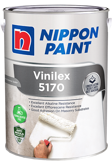 Nippon Paint Vinilex 5170 Oil-Based Wall Sealer contains a superior resin/binder, effective in preventing the degradation of finishing coats by alkaline surfaces. This wall sealer contains a blend of solvents that enables it to penetrate deeply and gives a firm base for subsequent coats